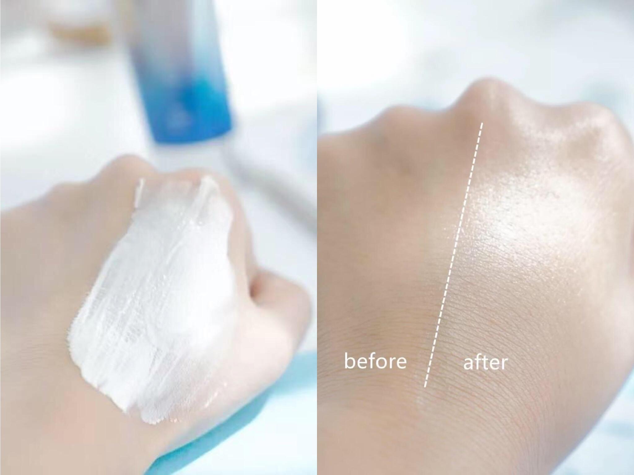 質(zhì)地是清透的乳霜,不會(huì)讓人感到油膩,而且水水潤(rùn)潤(rùn)很好吸收,干皮油皮都能用。涂它在皮膚上剛開(kāi)始會(huì)有些白,完全推開(kāi)后就和肌膚自然的融合形成透亮的健康果,它是在肌膚上形成一道自然隱性保護(hù)層,后續(xù)上妝很服帖不會(huì)浮粉或者搓泥,適合所有膚色和所有人群,尤其是敏感肌!
