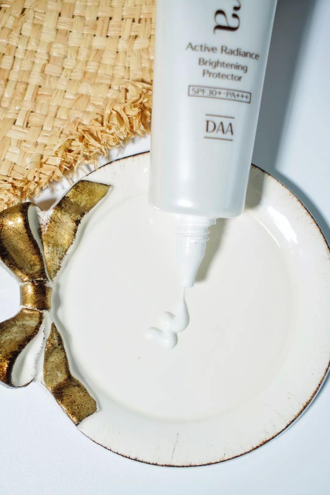它的主打成分叫DAA即D-氨基酸成分,是一種少量存在于人體肌膚中的物質(zhì),能夠提升肌膚透明感,另外里面還有海洋礦物保濕復(fù)合成分,結(jié)合在一起的大功就是防御紫外線引起的暗沉,保護(hù)肌膚不受環(huán)境污染,同時(shí)還美白保濕!說(shuō)明它已經(jīng)是一個(gè)成熟的防曬乳了,可以自己獨(dú)當(dāng)一面,能防曬能美白還能保濕,真的很棒!