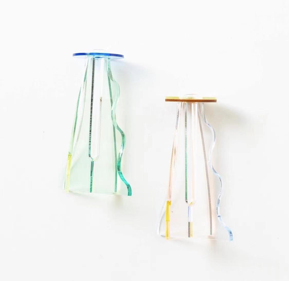 Plying所售賣的花瓶能讓人們意識到,單只花朵也可以兀自美麗的道理。每個(gè)花瓶均形成穩(wěn)固的三角型支撐,擁有不規(guī)則線條和輕盈色系,半透明質(zhì)感的亞克力材質(zhì)以不同色彩相互拼接,可根據(jù)花朵的顏色選擇花瓶,塑造強(qiáng)烈的個(gè)人風(fēng)格。小巧的花瓶只需插入一支簡單的花,便可以優(yōu)雅點(diǎn)亮沉悶空間,顯現(xiàn)與眾不同的清新氣息。
