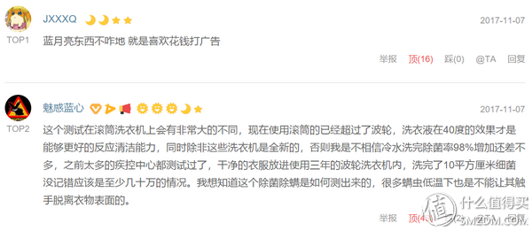 藍心對這篇測評有不同看法,我覺得也有他的道理:作為滾筒洗衣機的使用者,我更希望看到滾筒洗衣機+40度水溫的測評內(nèi)容。