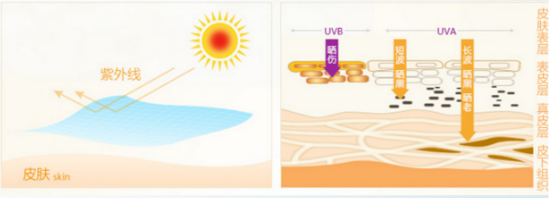 一直都說防曬,那么防曬防的到底是什么呢?其實(shí)防曬就是防紫外線,紫外線波長可分為長波(UVA)、中波(UVB)、短波(UVC)。UVA又稱“室內(nèi)紫外線”,可穿透層,破壞膠原及彈力纖維,不但能使皮膚曬黑,而且可造成皮膚失去彈性、出現(xiàn)皺紋。UVB又稱“戶外紫外線”,可達(dá)到層,使皮膚曬傷,引起紅斑、脫皮甚至水皰,可被玻璃、衣服、遮陽傘等阻隔。UVC在臭氧層就被吸收,不會到達(dá)地面。