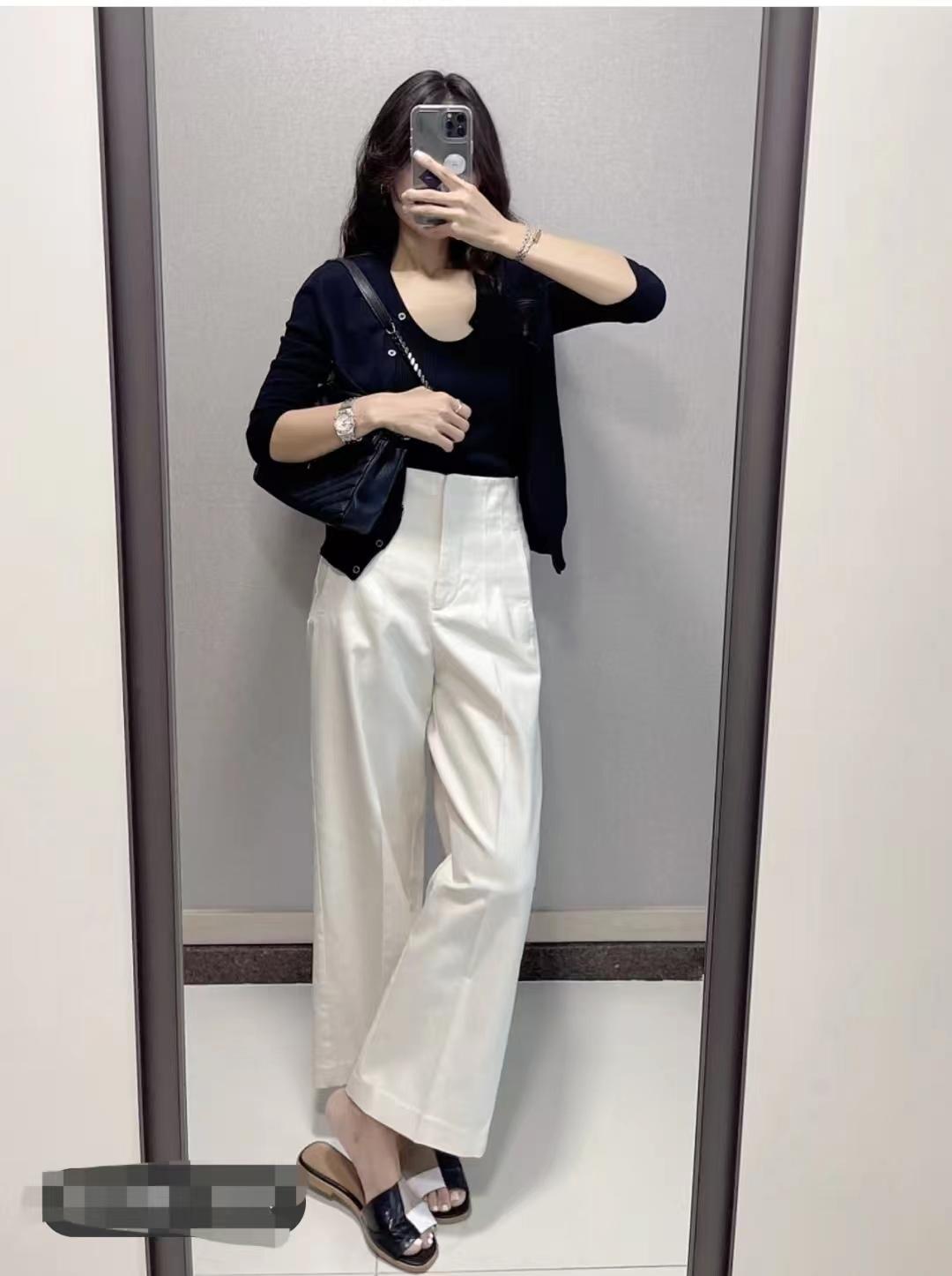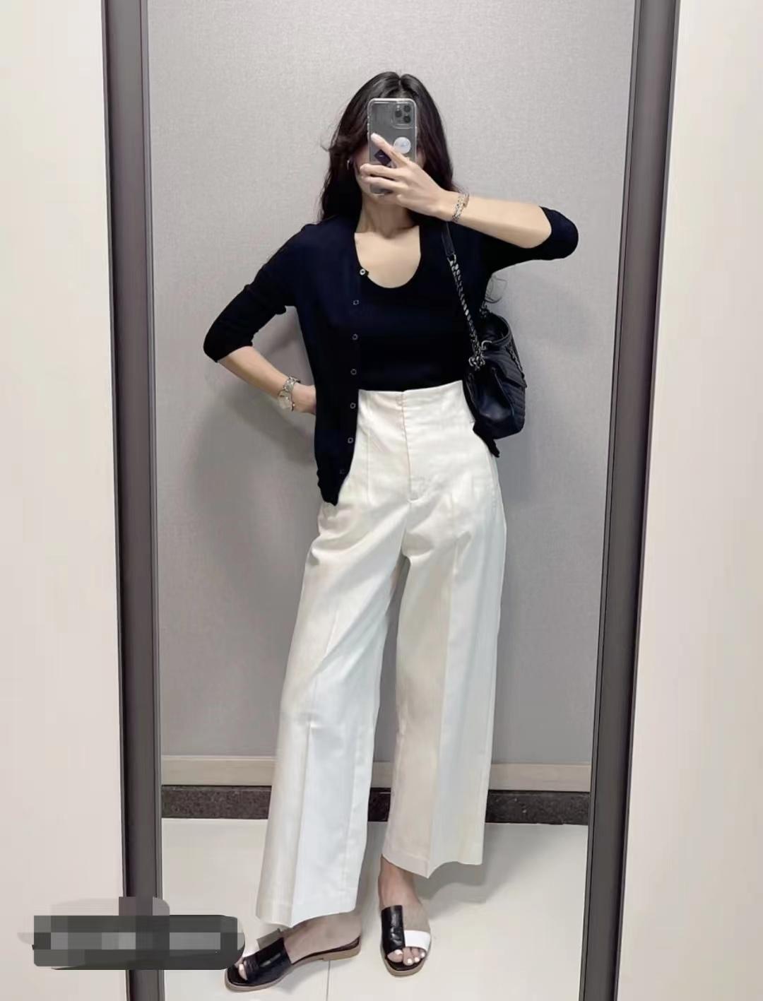 夏季防曬開衫+休閑褲穿搭,內(nèi)里是針織背心打底,一套夏日出行防曬必備單品搭配,下半身搭配米白色高腰休閑褲和瑞典小眾涼拖,打工人簡(jiǎn)約大氣通勤穿搭。