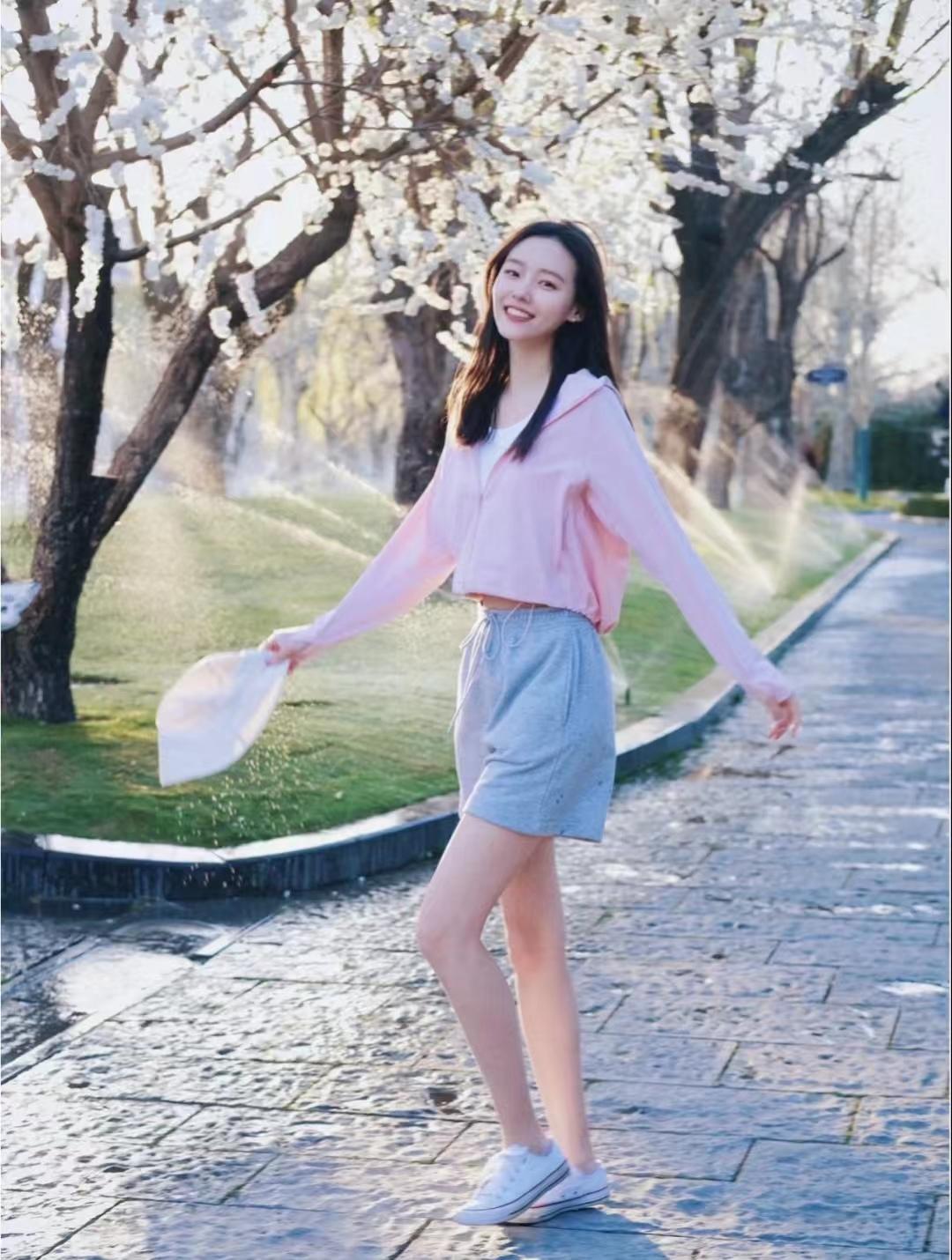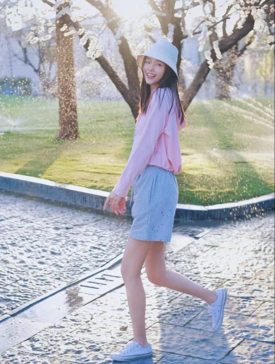 吊帶+短褲怎么穿都是元?dú)鉂M滿的樣子,外搭一件粉嫩嫩的防曬衣,畢竟太陽有點(diǎn)大。出門前把胳膊脖子抹滿防曬霜真的太麻煩了,好在現(xiàn)在防曬衣的設(shè)計(jì)都比較時(shí)尚,是一件日常休閑運(yùn)動(dòng)搭配的開衫。