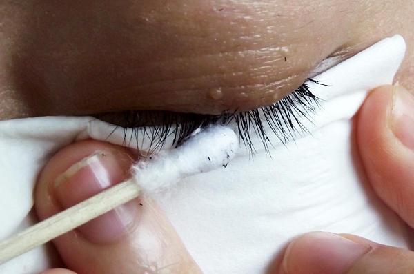 棉簽上沾飽了卸妝液,把浸透了卸妝液的棉片貼緊睫毛根部,墊在眼部,然后用棉棒順著睫毛根部往外擦,殘妝自動(dòng)留在了棉片上,而不會(huì)留在眼睛上。下眼皮的睫毛也是這么弄,不要直接融化在眼皮上。