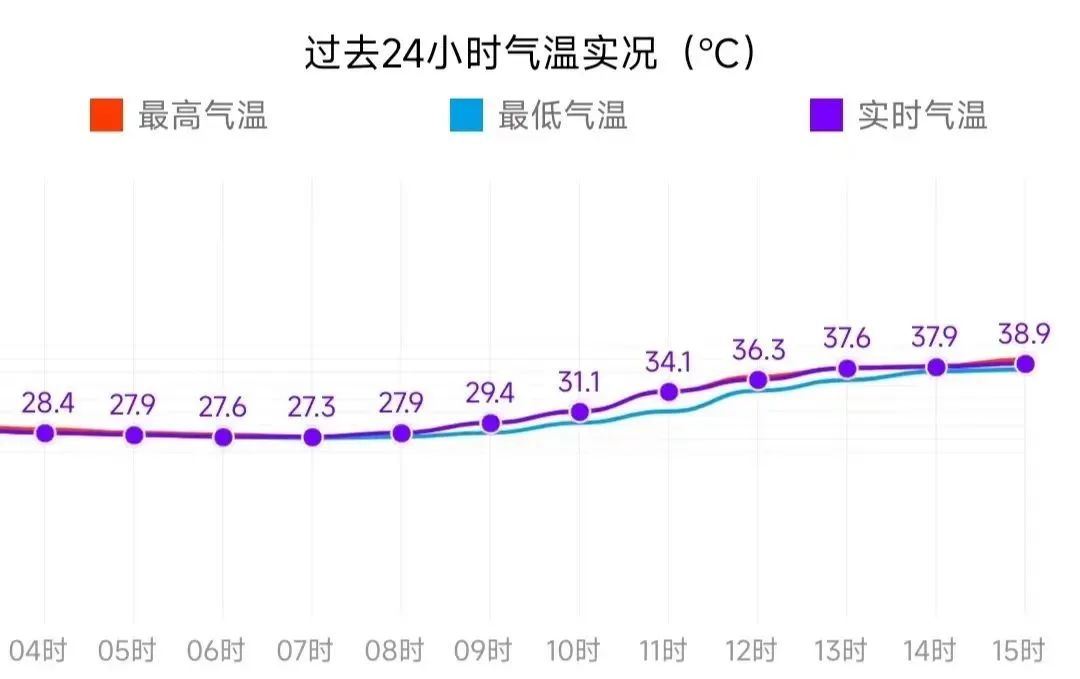 15時(shí)高氣溫達(dá)到38.9℃