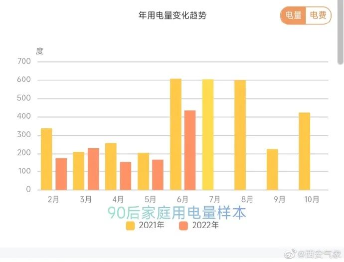 60后和90后家庭用電量,