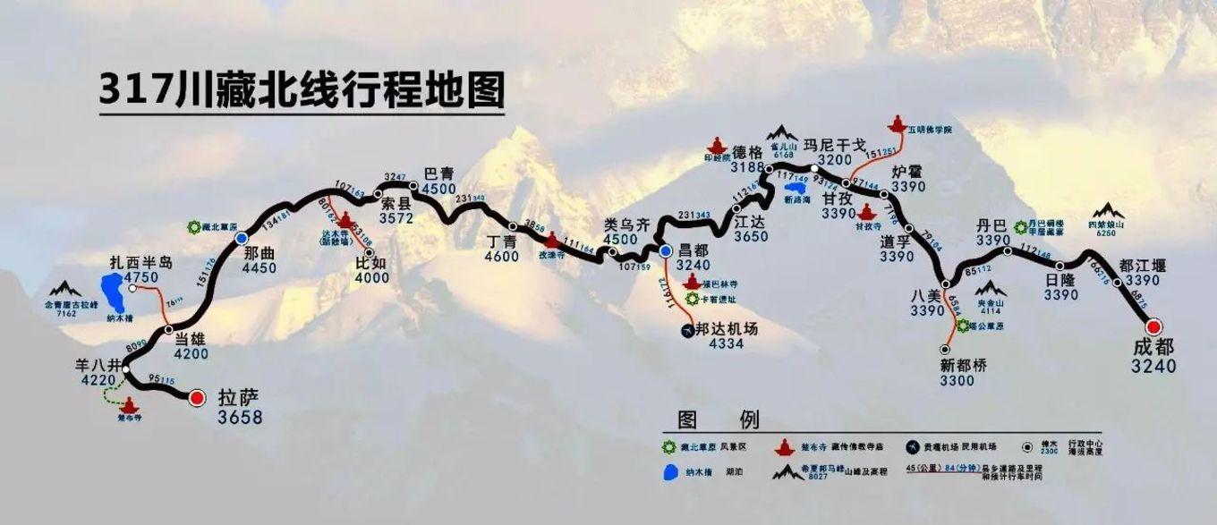 因?yàn)檎麄€(gè)自駕時(shí)間太長,為了避免您看的累我分為2篇來講述整個(gè)過程這一篇就說說317第一階段:G317國道入藏七條進(jìn)藏線路中, 川藏北線 通常是“第N次進(jìn)藏”的旅行者才會(huì)考慮穿越的區(qū)域。但這一區(qū)域無論是風(fēng)光的變幻莫測,還是宗教與歷史建筑物的密集度都遠(yuǎn)勝熱門而常規(guī)的 川藏南線 318。 甘孜 金黃的青稞田, 德格 的“人間仙境”多瀑溝,扎科的苯波重鎮(zhèn),亞青和 色達(dá) 的莊嚴(yán)叢林.......無不讓人處處驚心,時(shí)時(shí)動(dòng)容。 川藏北線 兼具自然風(fēng)光和人文遺跡,享有“東方的阿爾卑斯”之稱的 四姑娘山 ,“千碉之國” 丹巴 ,墨香濃郁的印經(jīng)圣地 德格 ,“西天瑤池”新路海,川藏第一高和第一險(xiǎn)的雀兒山,世界上高的 大湖 納木措……沿線的景觀不僅會(huì)讓你的視覺得到享受,也會(huì)讓你的心靈得到洗禮。比起 川藏南線 來, 川藏北線 走的人相對較少。這條線路全長2412公里,是一條艱苦卻充滿 西藏 人文故事的線路。沿途高聳入云的雪山,狂野奔騰的河流,寬廣秀麗的草原,潔白美麗的帳房,隨風(fēng)飄揚(yáng)的經(jīng)幡,金碧輝煌的寺廟,不僅沖擊著你的視野,也震撼著你的靈魂。我的317線路安排:南京 → 宜昌 (840km D1)→ 都江堰 (910km D2)→ 四姑娘山 雙橋溝(150km D3)→ 四姑娘山 長坪溝→ 丹巴 藏寨(120km D4)→ 丹巴 — 金川 —喇榮五明佛學(xué)院— 色達(dá) (360km D5)—喇榮五明佛學(xué)院— 甘孜 ( 230km D6)—雀兒山—新路?!?德格 印經(jīng)院— 德格 (210km D7)— 江達(dá) — 昌都 (350km D8)— 類烏齊 — 丁青 (260km D9 )— 巴青 — 索縣 (270km D10)— 比如 縣— 那曲 (330km D11)—納木措— 拉薩 (490km D12)