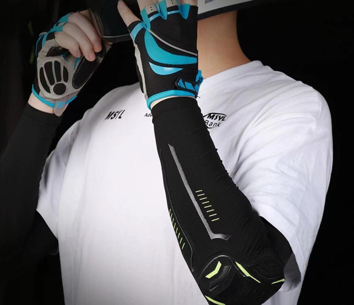 帶護具的冰袖,又防曬又防摔,很貼身,袖子也是速干的材質(zhì),戴上涼涼的。
