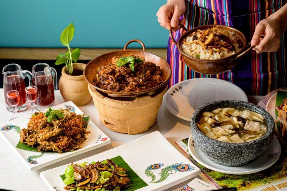 (套餐包括:菌王湯、宣威火腿炒新鮮牛肝菌、蒼山四珍、香草排骨/大山燜鴨、蒜蓉炒山蘇、菌王飯、野生山茶、玫瑰葡萄酒)