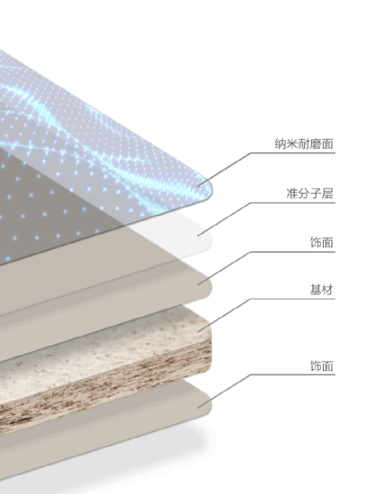 慕宸慕勒準(zhǔn)分子膚感板,是在高純度氮?dú)饷荛]空間中,用準(zhǔn)分子光束照射,使得板材表面發(fā)生了納米級(jí)物理變化,不僅飾面表部呈現(xiàn)細(xì)膩光滑的狀態(tài),同時(shí)還具有耐污漬、耐高溫、抗劃痕等優(yōu)勢(shì)。