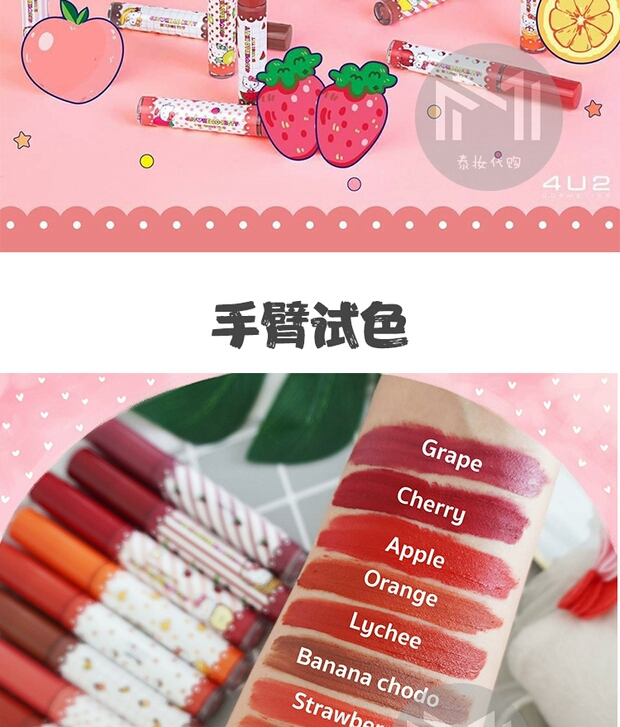唇釉是絲絨質(zhì)地,沒(méi)有任何的流動(dòng)性,像比較稀有的膏體。雖然10cherry火的一塌糊涂,但是4U2 Hello Kitty的巧克力色真的是巧克力本巧,又帶有微妙的棕帶一點(diǎn)橘和紅色,薄涂很日常很好看。