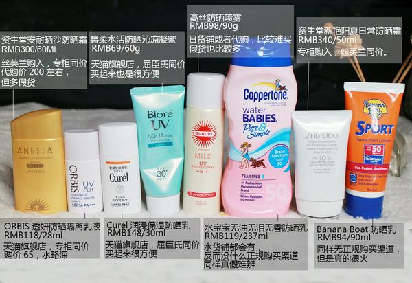 美的還是高大上資生堂新艷陽夏日常防曬霜;同為日系品牌的Curel、ORBIS、碧柔都是走簡潔小清新路線;安耐小金瓶其實我不太喜歡這種土豪包裝;KOSE沒啥特別,也是日系的風格;BananaBoat和水寶寶大家看看就好!