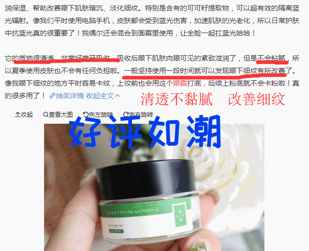 大家說好才是真的好。這瓶蜜梨抗藍光眼霜,用過的姐妹都在夸!