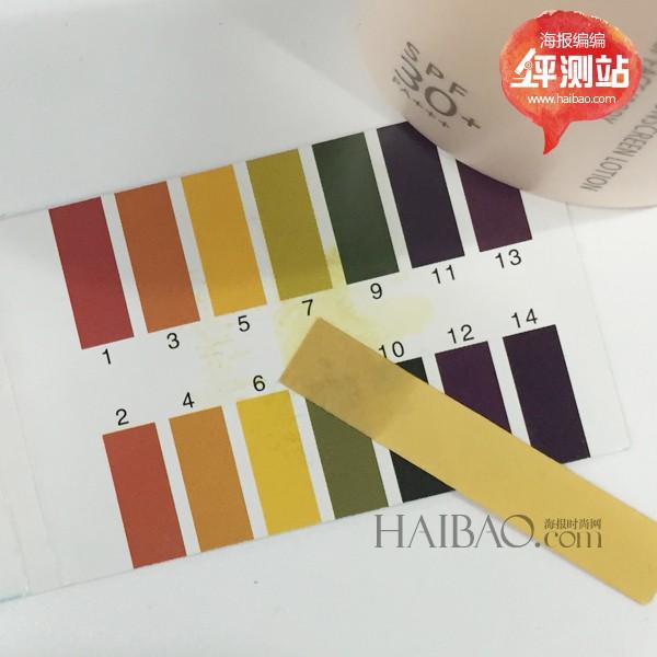 評測結(jié)果:由圖中可以看出,在涂抹上隔離液后,試紙呈現(xiàn)的顏色顯示其PH值在4—5之間,為弱酸性,與人體臉部肌膚的PH值接近。證明這款隔離液性質(zhì)很溫和,不會帶來刺激果,敏感肌也能安心使用。