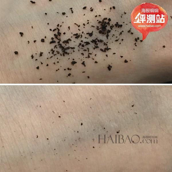 評測結(jié)果:從對比圖可以看出,抖動手背后,肌膚上的茶葉渣殘留量極少,證明隔離液與肌膚的貼合度很高,肌膚從直觀上表現(xiàn)出來的感覺也是很清爽不粘膩的。而且在涂抹的過程中,也能從觸感上感受到產(chǎn)品的清爽、無油膩感。以上均能說明此款隔離液的清爽性,使用時以及使用后都無粘膩不適感。