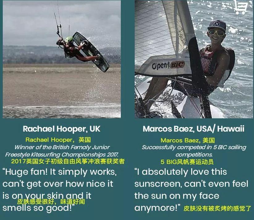 而且這些海上運(yùn)動員,他們對防曬霜所含的化學(xué)物質(zhì)極為挑剔,絕不允許自己所使用的護(hù)膚產(chǎn)品對海洋造成任何傷害,Suntribe防曬霜成分,完全打消了他們的顧慮,受到了各國運(yùn)動員的喜愛!