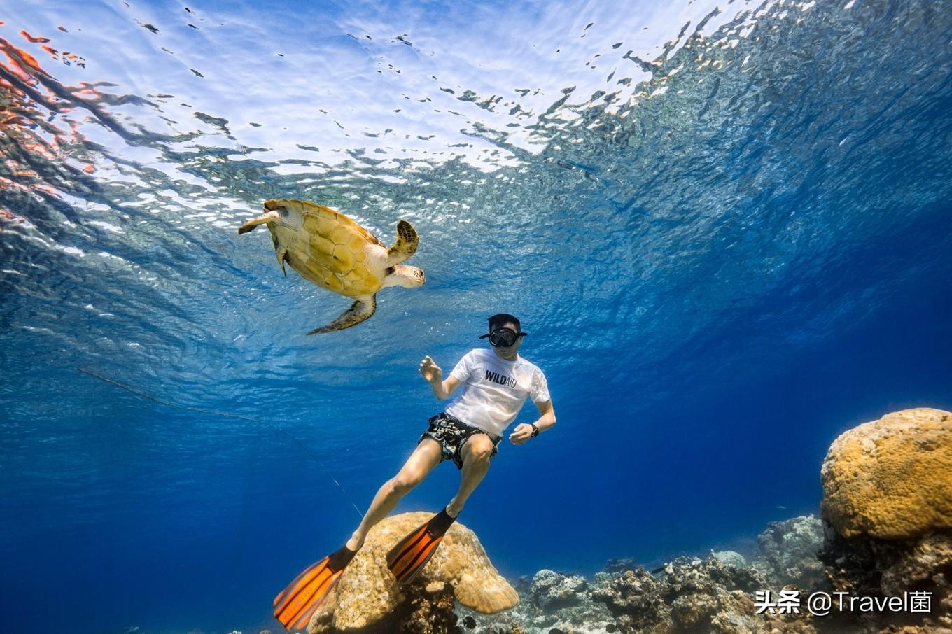 APO島本身是一個(gè)巨大的海洋保護(hù)區(qū),這里生態(tài)環(huán)境良好,物種豐富,周圍海域常年生活著五六個(gè)品種近幾十只海龜,這里為海龜?shù)膶iT設(shè)立的保護(hù)區(qū)離海岸并不是很遠(yuǎn),所以浮潛出去不用很遠(yuǎn)就可以看到它們慢悠悠游動的身影。同時(shí)這里的水質(zhì)極其清澈,在水底下拍照也很合適