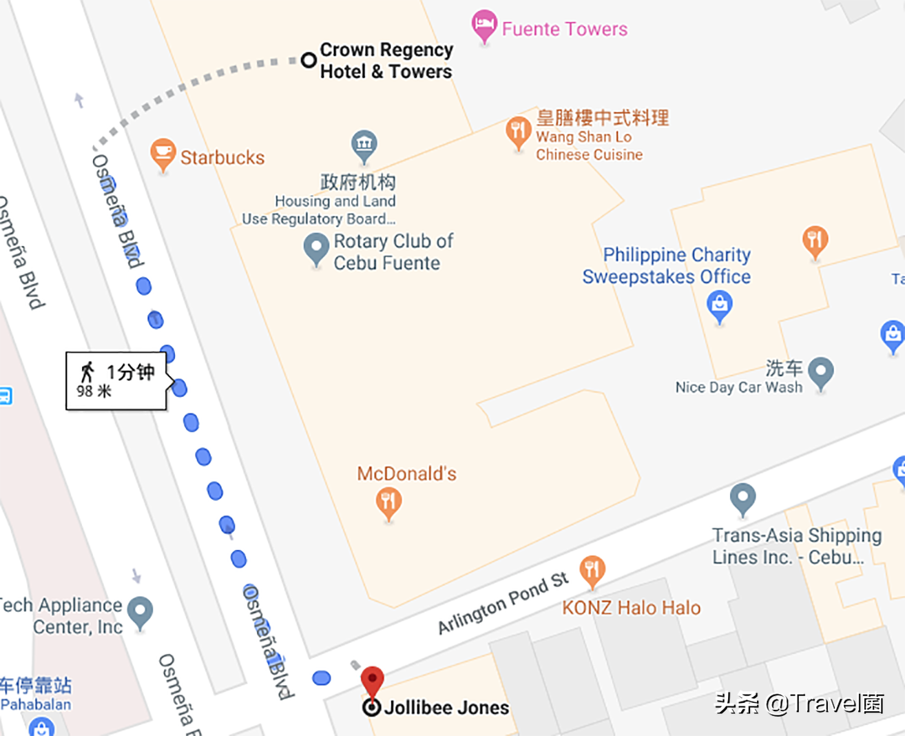 Day1.落地感受宿霧市井風(fēng)第一天從國內(nèi)機(jī)場出發(fā),下午到達(dá)宿霧,入住宿霧市中心酒店;傍晚可以在酒店旁邊嘗嘗菲律賓超有名的“快樂小蜜蜂”餐廳,吃完晚餐,閑來走走可以到距離酒店只有5分鐘路程的小公園吹吹風(fēng)
