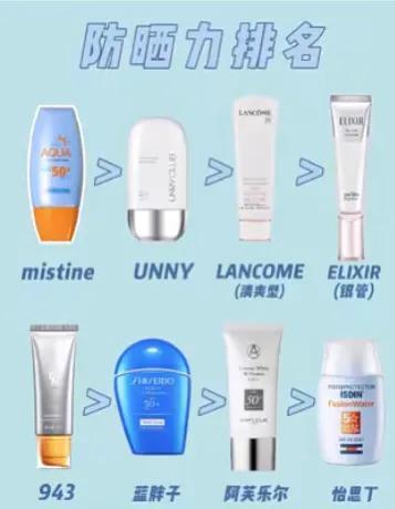 這是防曬指數(shù)排名 總的來說 值得比較購買的三款有 1. unny 2.蘭蔻的白管清爽版 3.943