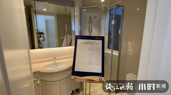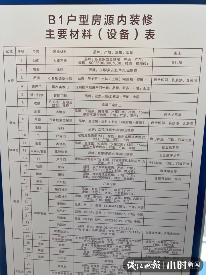 走進樣板房的每一個房間,核心的位置,都立著一塊牌子,上面注明各種建造材料清單,包括品牌、產地等信息。