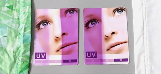 結(jié)果發(fā)現(xiàn),同事的防曬衣只能阻擋部分紫外線,遮擋部分下依然有部分變紫;而素湃遮擋下的檢測(cè)紙則一如剛開(kāi)始的顏色。