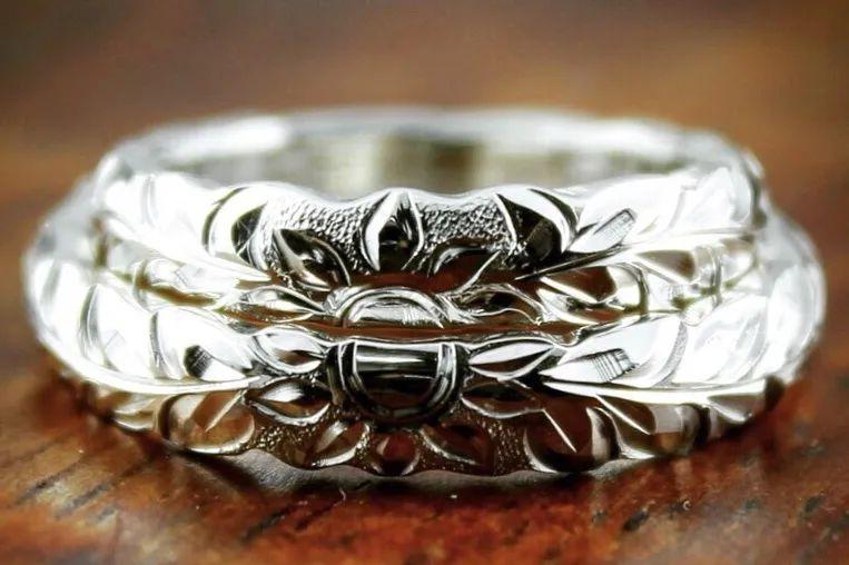 此外,與強(qiáng)調(diào)雕刻線條之深與做舊感的印銀不同的是,傳統(tǒng)夏威夷珠寶大多都會以更加纖細(xì)的線條呈現(xiàn)復(fù)雜的花紋與樣式,突出打磨后的光澤感。因此對于工匠的雕刻技術(shù)要求更是極高。