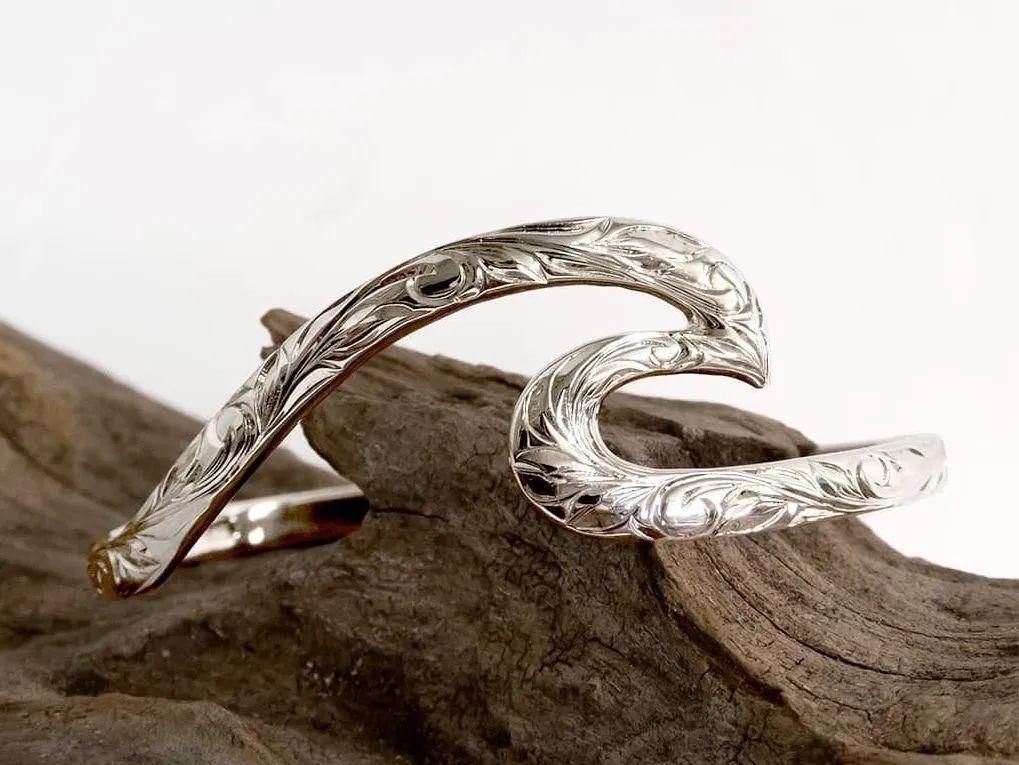 像是這款銀手鐲不僅刻有傳統(tǒng)的夏威夷花紋,還采用了獨具一格的波浪造型呈現(xiàn),能夠十分巧妙地修飾細(xì)長的小臂。今年 520 該送女朋友什么禮物,想必不用我多說了吧~