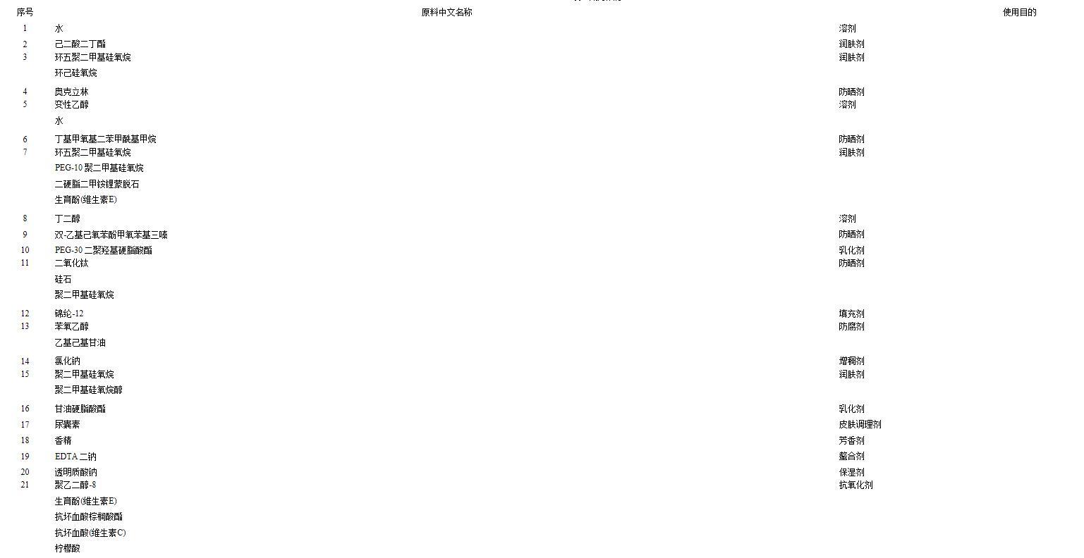 純化學(xué)防曬劑配方,查到的備案其實(shí)是SPF50+(也就是現(xiàn)在標(biāo)注的SPF30+這個(gè)款)