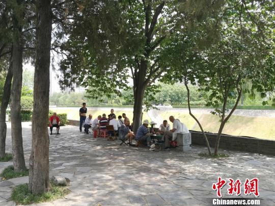 圖為民眾在陰涼處休閑娛樂。 張梟 攝