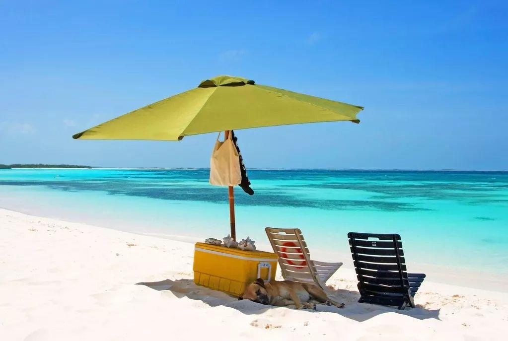 沙灘雪白雪白,把海水映得層次分明,近處是淺淺的綠,遠(yuǎn)處是深深的藍(lán),此時(shí)此景,再多的煩惱也可以?huà)佒聊X后。