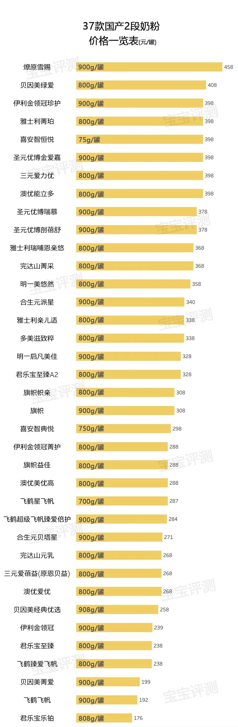后,附上37款國(guó)產(chǎn)2段奶粉時(shí)下的價(jià)格一覽表,不同平臺(tái)不同時(shí)期價(jià)格可能會(huì)有差異,僅供大家參考。