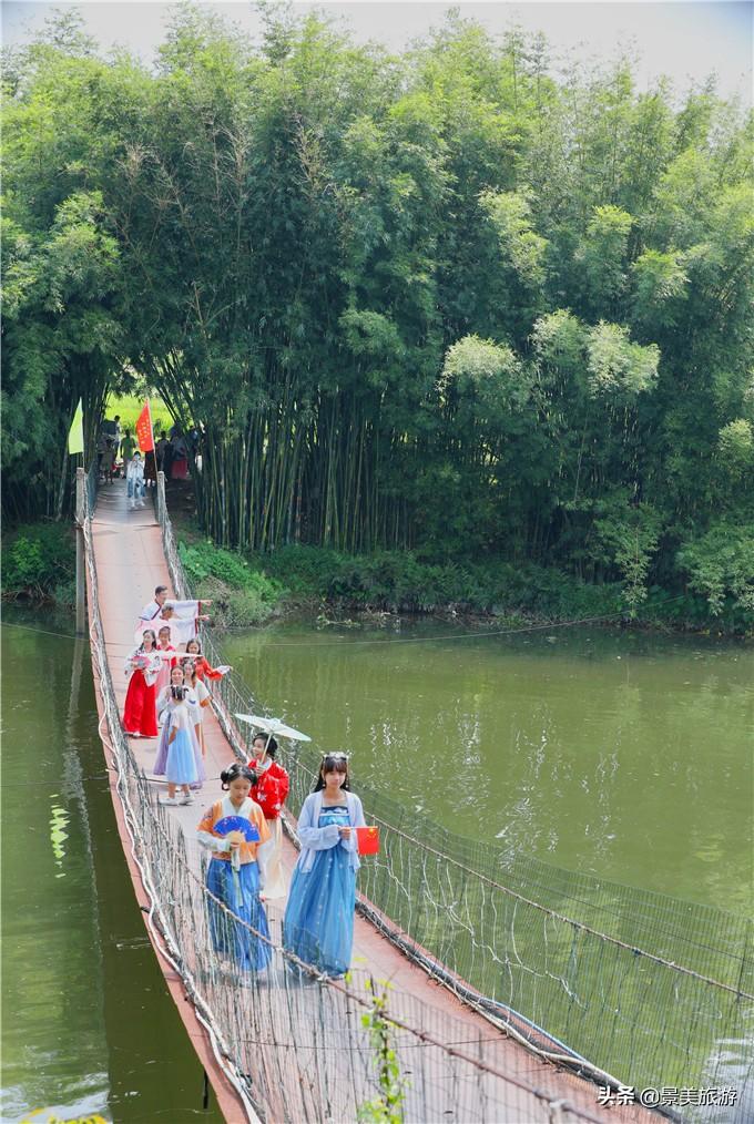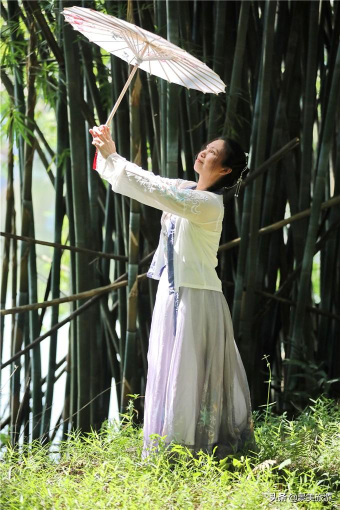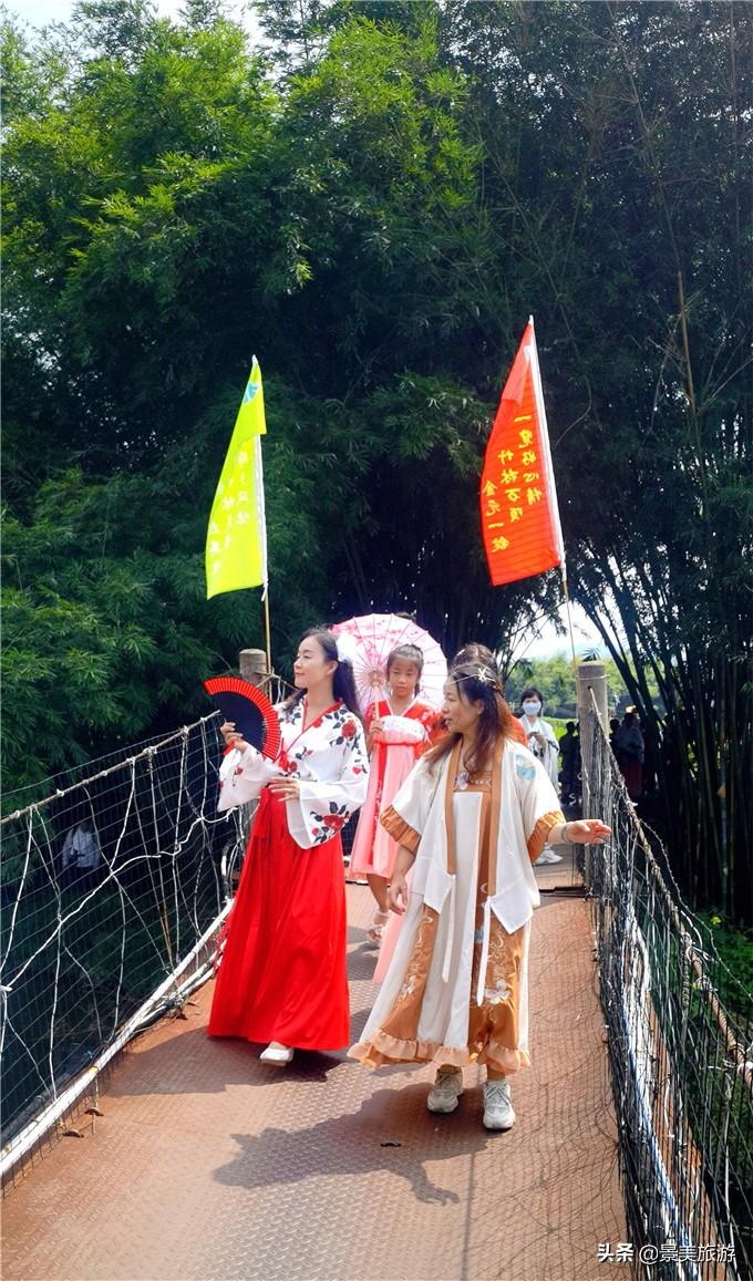 不要以為徒步一定要穿運(yùn)動服與登山鞋,古水河的徒步可以穿漢服,想想在延綿數(shù)十公里的竹海里,身穿漢服,搖古扇,撫古琴,該是怎么的一番意境。一群群穿著漢服、旗袍的古裝愛好者也紛紛打卡古水河畔,絢麗的漢服與竹林環(huán)境相融合,飄逸的衣裙、優(yōu)雅的姿態(tài),婀娜的身段,讓古水河郊野徑徒增了獨(dú)有的古韻風(fēng)情。這些漢服愛好者也成了游客鏡頭里的風(fēng)景。