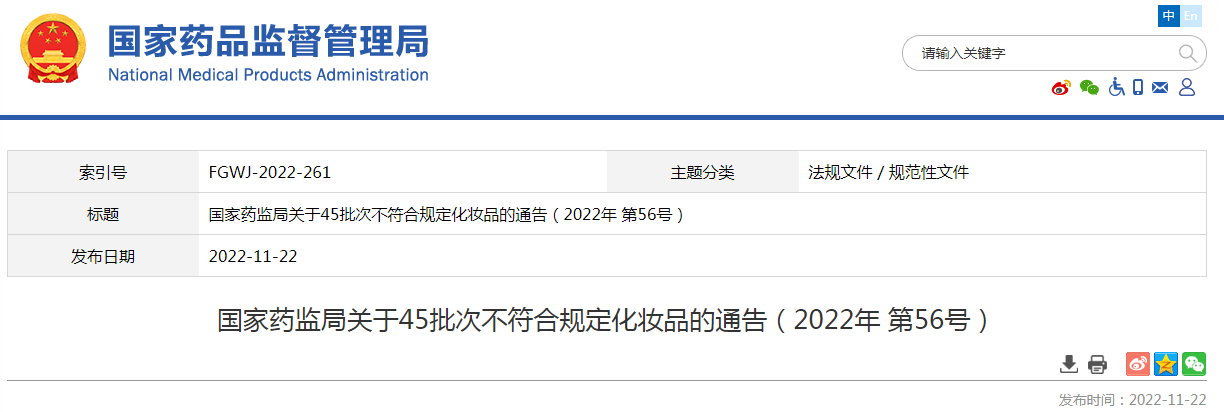 在2022年化妝品監(jiān)督抽檢工作中,經(jīng)海南省藥品檢驗所等單位檢驗,產(chǎn)品標簽標示為廣州賽絲化妝品有限公司生產(chǎn)的賽絲之秀潤黑露(自然黑)等45批次化妝品(含牙膏,下同)不符合規(guī)定(見附件)。