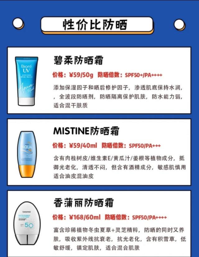 通過(guò)防曬霜的質(zhì)地、使用感、適用膚質(zhì)、價(jià)格、防曬系數(shù)逐一為大家推薦
