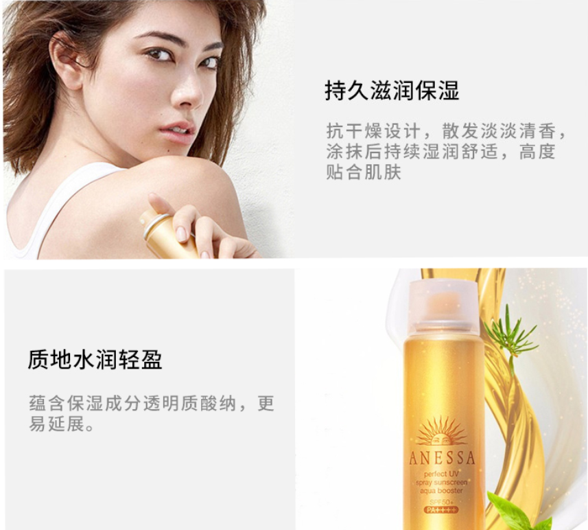 【Anessa 安耐曬—防曬噴霧】不同,防曬防黑的同時,推出了Aqua Booster水能技術(shù)。