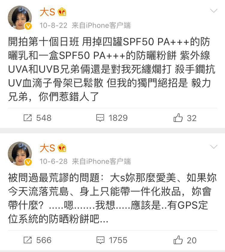 女明星的防曬霜、防曬噴霧大概都是批發(fā)的吧。大S也是防曬霜使用大戶,十天四罐這個(gè)水平也真的是厲害,只能承認(rèn)比你白的人就是比你勤快。
