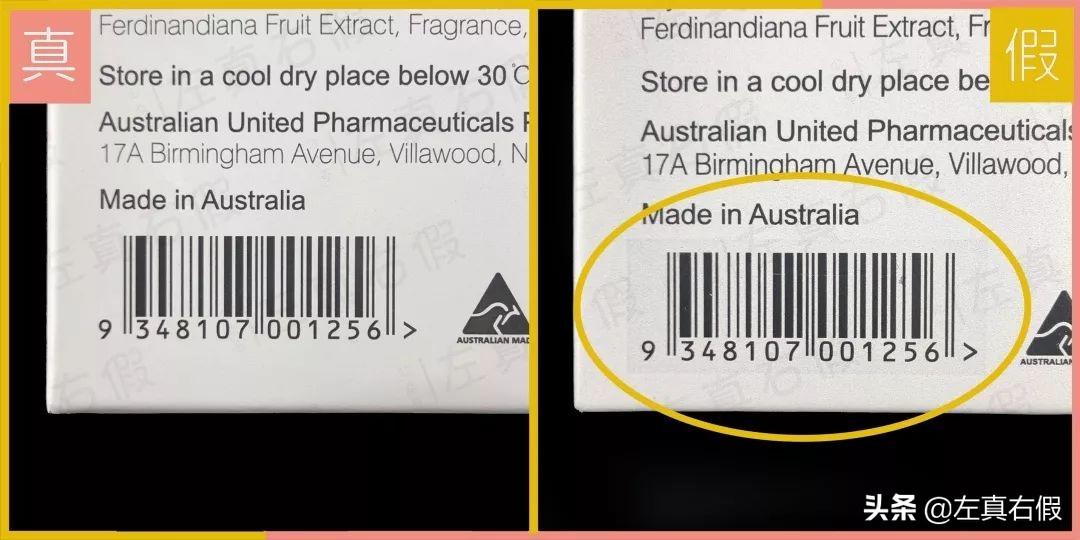 假貨包裝盒背面的條形碼
