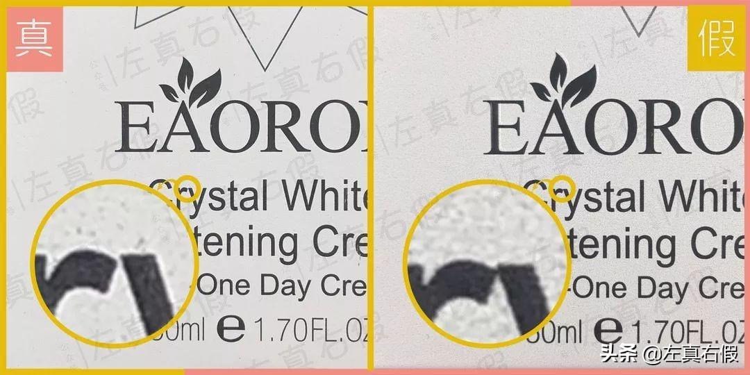 2、看上面的字體,印刷字體很清晰;而假貨字體又細(xì)又淡,放大還會(huì)看到毛邊。