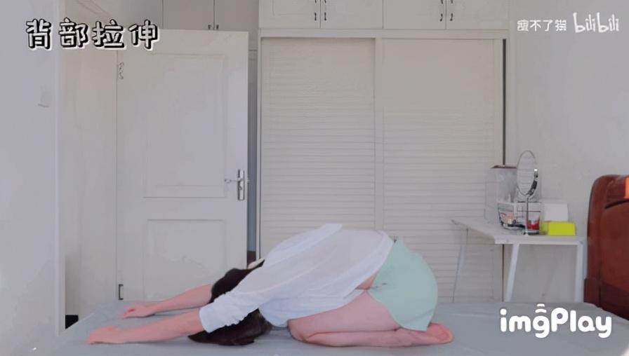 做完兩組之后,可做一個背部拉伸,舒緩一下,就開始做頸部訓練了。