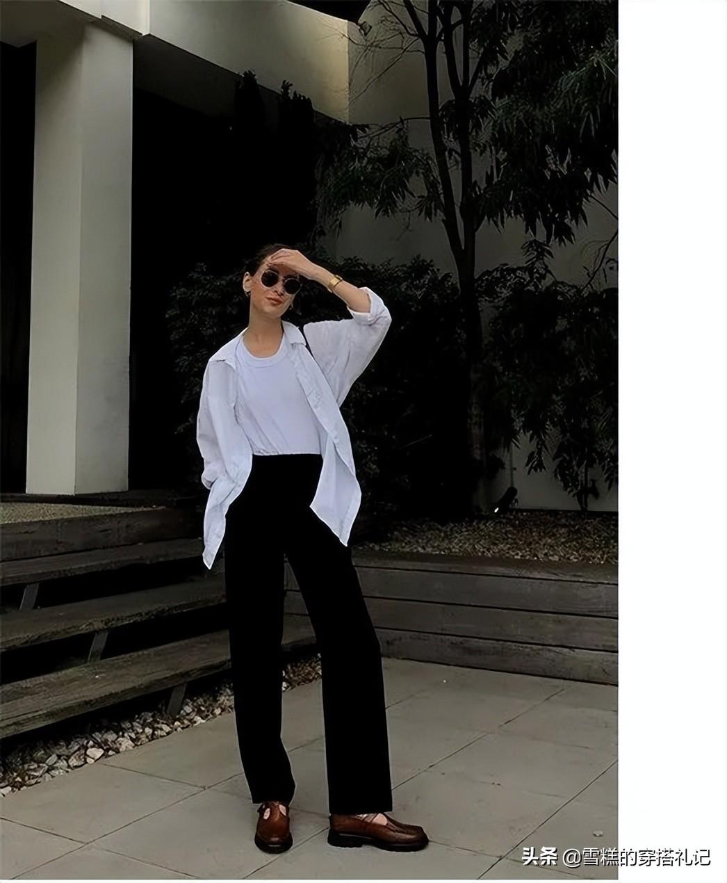 身材條件更好的女人,可以嘗試用加寬的白襯衫搭配深色褲,強化腿形曲線,好身材自然一目了然。