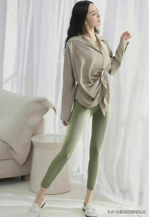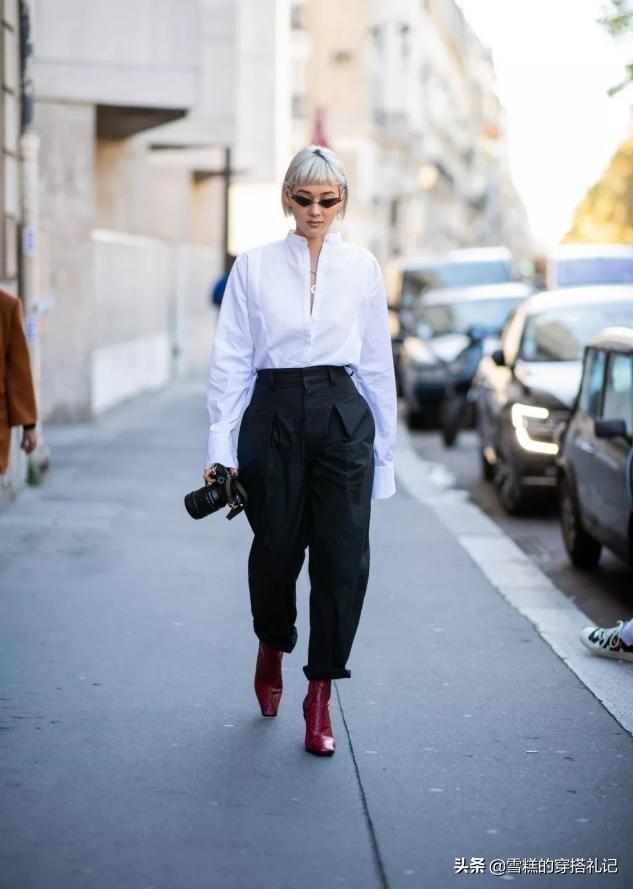 純白色系的襯衫穿法基礎(chǔ),比較適合小白入門搭配。但楊冪帶火的造型,更適合時髦精們造作。
