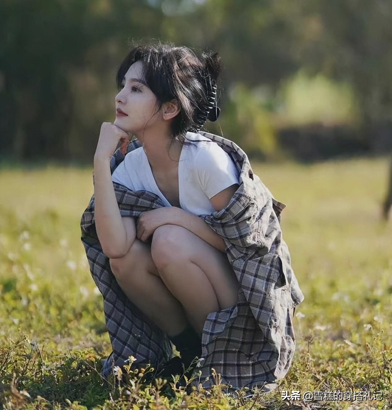 身材骨架量感偏小的女生,像楊冪一樣,穿搭吊帶款式修身內(nèi)搭,更顯上身線條曲線的豐滿和飽滿。男友風襯衫外套的特點就是輪廓偏大,有oversize風格的隨性感,搭配短裙或短褲,日常出門,時尚的很惹眼。