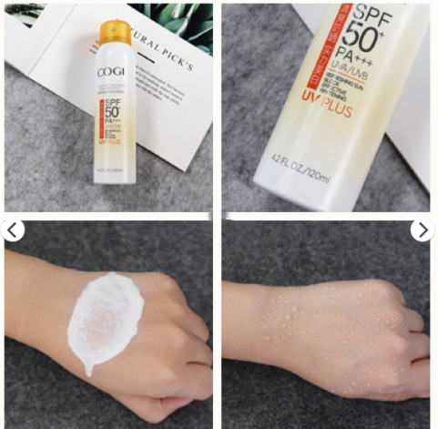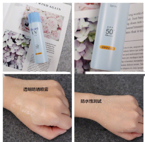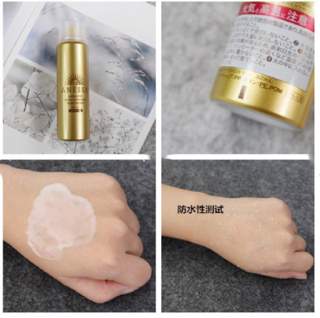 噴出來是白色噴霧,噴霧也沒碧柔那么細(xì)密,不過推開之后還好,不會泛白。防曬性也還可以。
