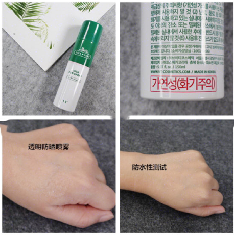 噴出來質(zhì)地是微乳狀的,但涂開就變透明無色的了,不會泛白。膚感是滋潤的,也不會搓泥,防水性當(dāng)然也沒得說。