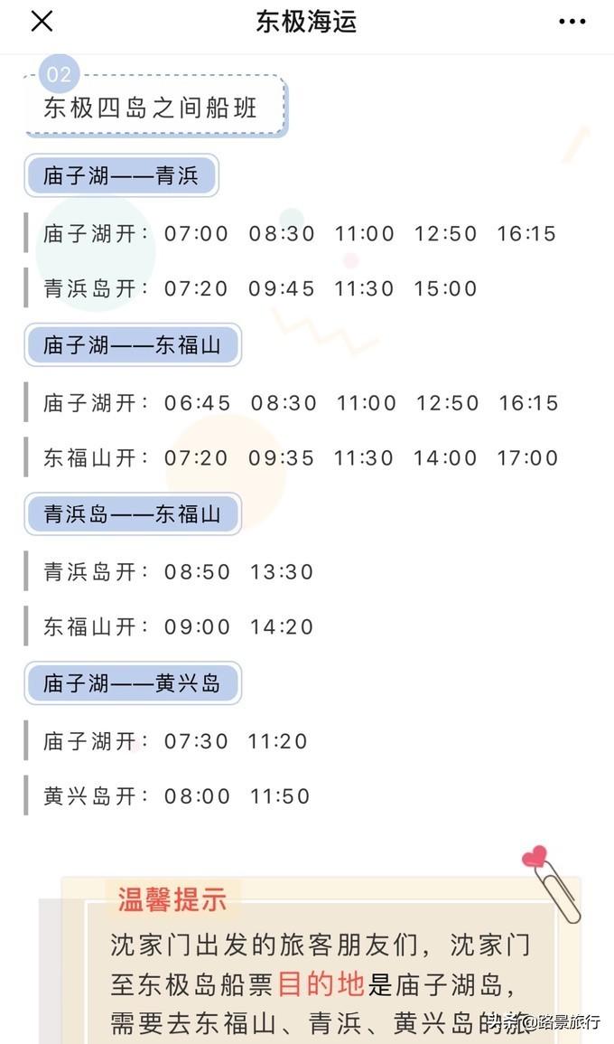 「8.3.2」船票預(yù)定問題首先,每個(gè)月都會(huì)在“東極海運(yùn)”公眾號(hào)發(fā)時(shí)刻表,可以保存,以備不時(shí)之需。1、上島:一定要提前買票,特別是因?yàn)楝F(xiàn)在是暑假,正值旅行高峰。買票要關(guān)注微信公眾號(hào): 舟山 海星輪船