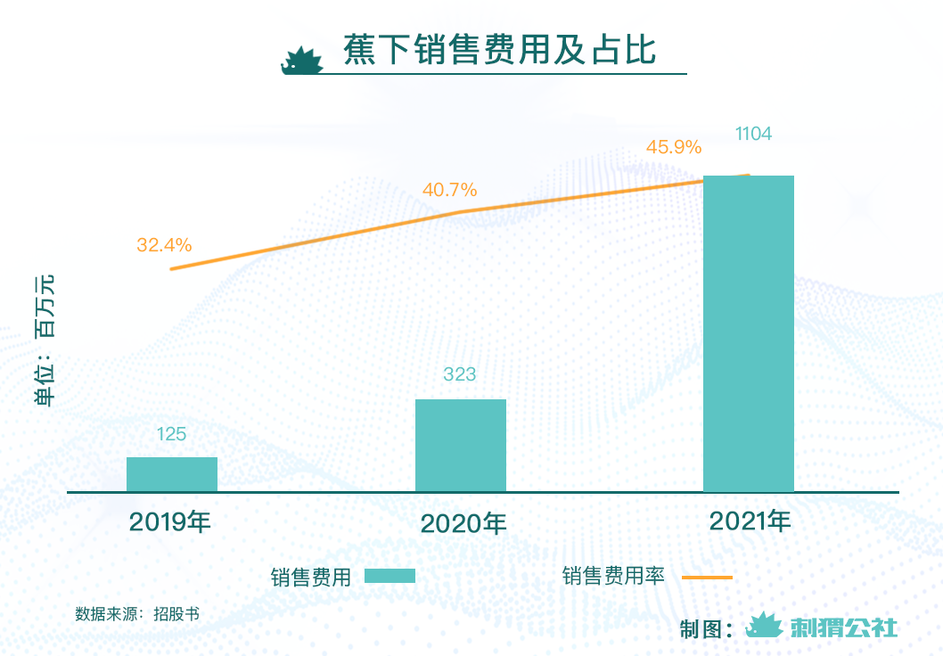而2019-2021這三年,是蕉下銷售費用飛速膨脹的時期,它也因此被扣上“重營銷,輕研發(fā)”的帽子。不過,這些營銷手段也實打?qū)崕椭断卵杆俅蝽懼龋嵘宿D(zhuǎn)化率。