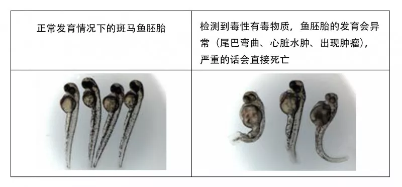 斑馬魚胚胎在接觸止樣本中急性有毒物質后,會出現發(fā)育異常,甚至是直接死亡;
