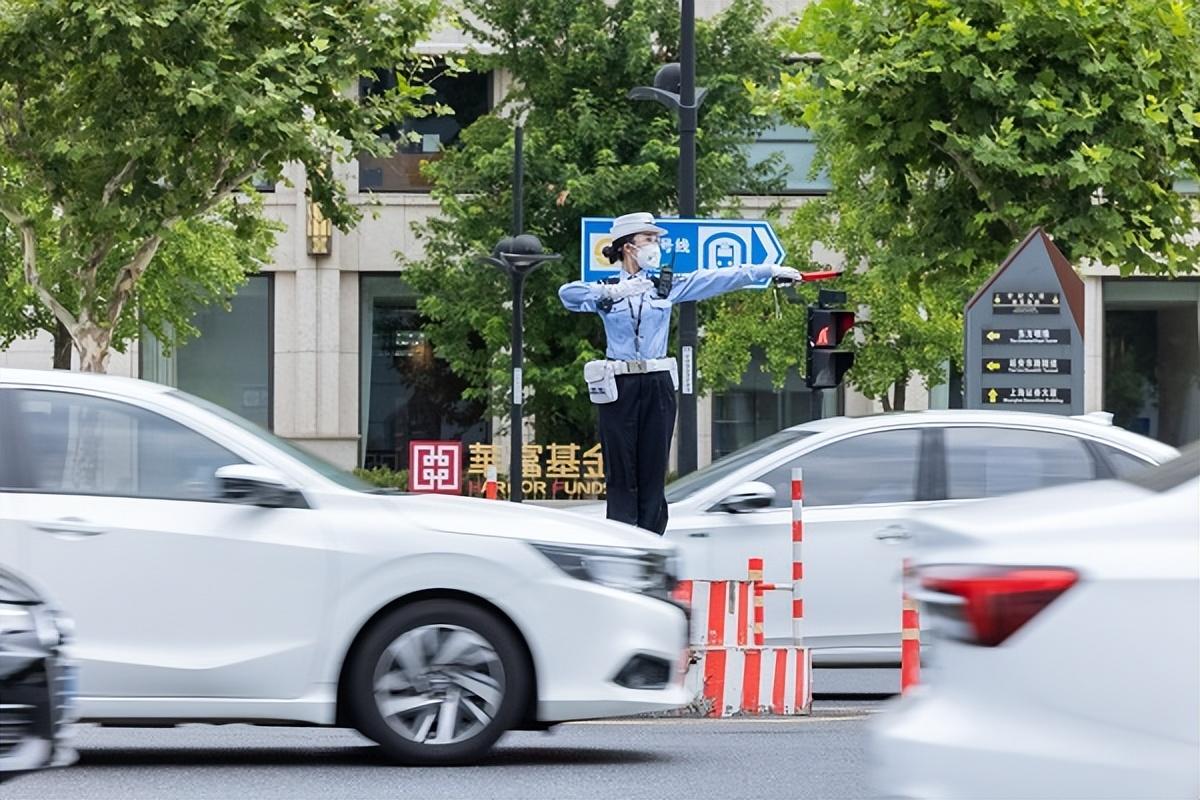 圖說:女交警堅守崗位,全副武裝指揮交通。浦東警方供圖