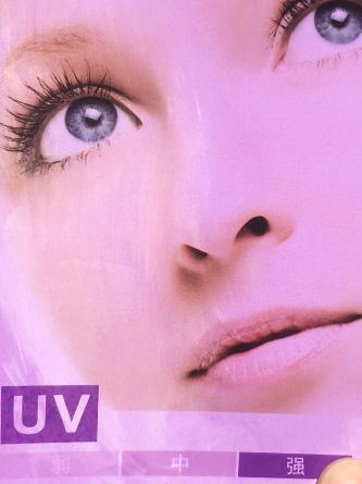 (將等量產(chǎn)品涂抹在紫外線測試卡左邊部分,觀察防曬果。)