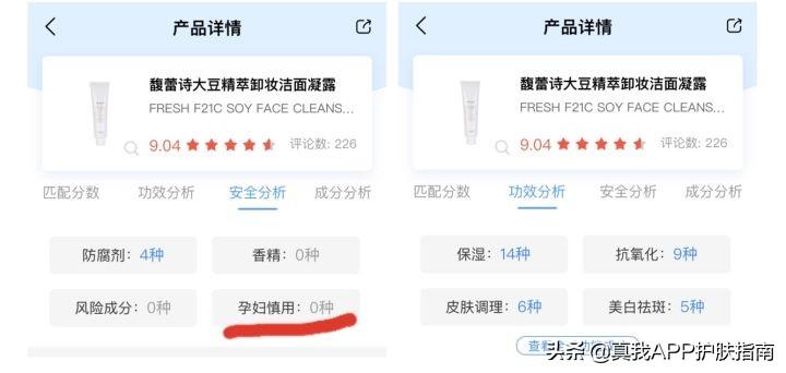 是一款潔面與卸妝二合一的洗面奶,旦乳白色、流動性也比較強(qiáng),淡淡的黃瓜味,比較溫和舒服,從上圖真我app截取的分析中可以看出成分中無孕媽禁用成分,因此對于寶媽來說,也是很的一款潔面。
